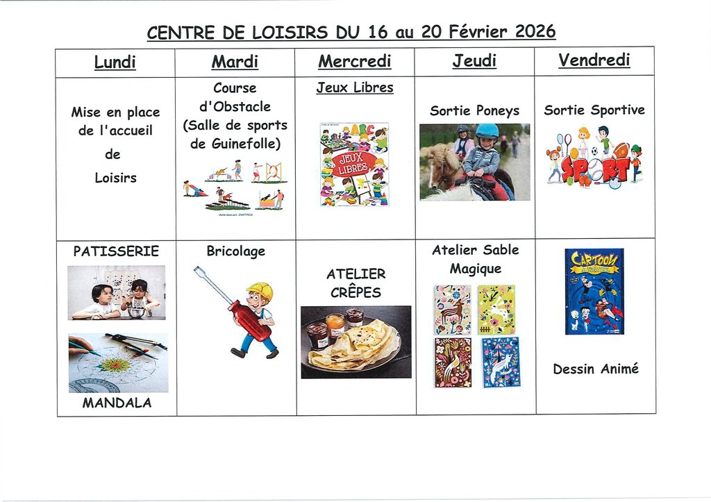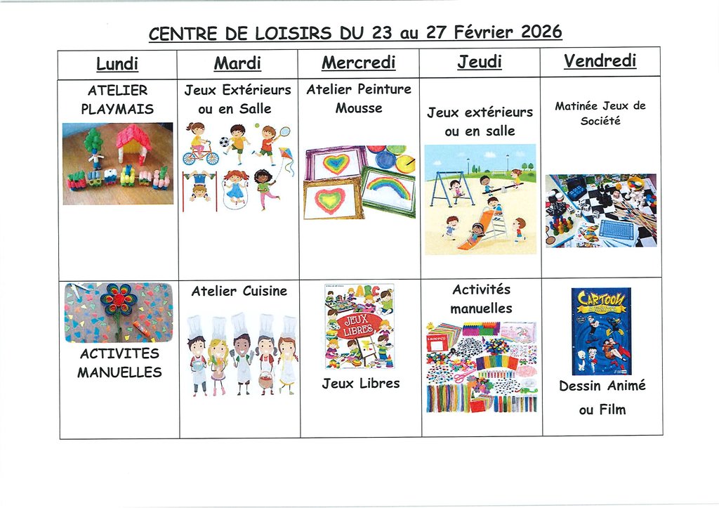 Vous trouverez le planning du Centre de loisirs de ST GEORGES BUTTAVENT pour les vacances de Février 2026