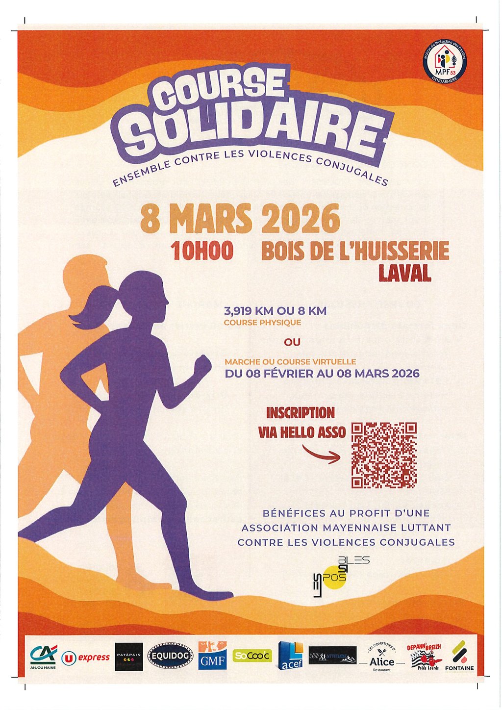 À l’occasion de la Journée internationale des droits des femmes, la Maison de Protection des Familles (MPF) du groupement de la gendarmerie départementale de la Mayenne organise une course solidaire le dimanche 8 mars 2026, au profit de l’association mayennaise Les Possibles, engagée dans l’accompagnement des victimes de violences conjugales.