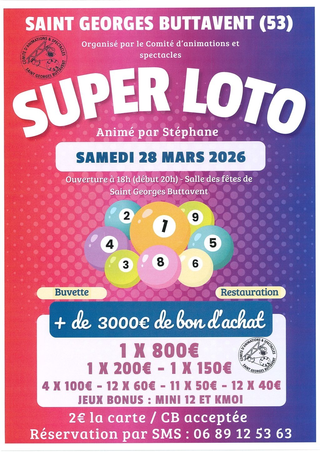 SUPER LOTO DU COMITE D'ANIMATION ET SPECTACLE DE SAINT GEORGES BUTTAVENT