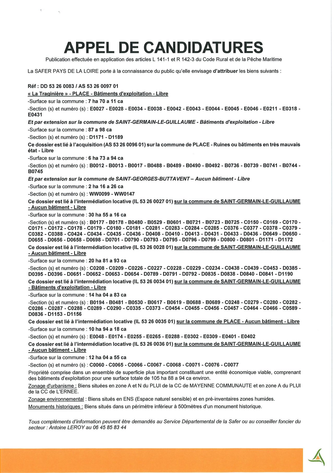 APPEL DE CANDIDATURES SAFER